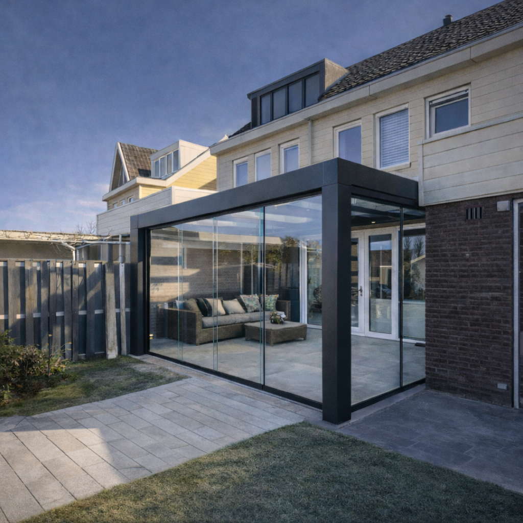 Onze glazen schuifwanden combineren functionaliteit met comfort en uitstraling. Met één eenvoudige beweging sluit u de wanden en blijft u beschut tegen wind en regen, zonder het open gevoel te verliezen.